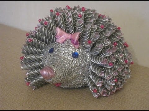 Сначала из теста формируется тело ежика. Спиральки следует предварительно окрасить в серебристый цвет. На мордочку наносим звездочки плотным слоем, также предварительно окрашенными в серебро. Затем на тело ежика прикрепляем спиральки, предварительно смазанные клеем ПВА. Глаза ежика создаются из бусинок. В завершение не забудьте повязать милому созданию бантик.