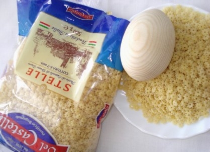 макароны в форме спиралек и маленьких звездочек, а также одна средняя ракушка;