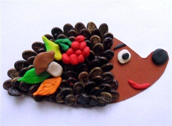 - как прикреплять к пластилину дополнительные материалы, например, бисер, крупу, макароны, семечки и т. д.