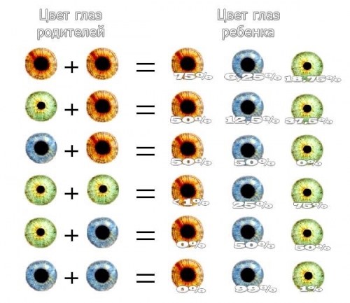 • У родителей с голубыми (или серыми) и карими глазами шансы равны.