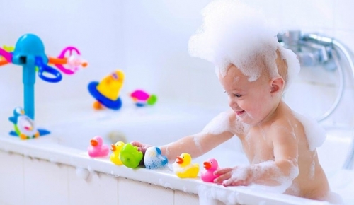 • Комплексное развитие. Играя в ванной с водонепроницаемыми книжками, резиновыми или механическими игрушками, малыш развивает мелкую моторику, воображение и другие навыки.