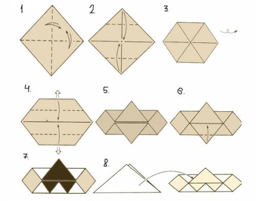 Эта красивая корона выполнена из квадратов бумаги золотистого цвета. Для ее изготовления нарежьте множество квадратов одинакового размера. Затем сложите фигуры по диагонали пополам и склейте их между собой, вставляя одну в другую.