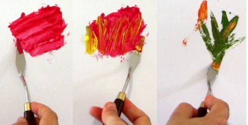 Чтобы познакомить ребенка с этим видом искусства, достаточно приобрести необходимые инструменты и начать творить. Если есть желание, юный художник может использовать шпатель в сочетании с кистью, но на первых порах лучше сосредоточиться на работе с лопатками.