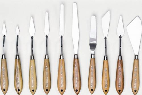 Выбор мастихинов для работы с маслом весьма разнообразен, они отличаются по форме и размеру, что позволяет начинающему художнику подобрать инструмент для выполнения любых задач.