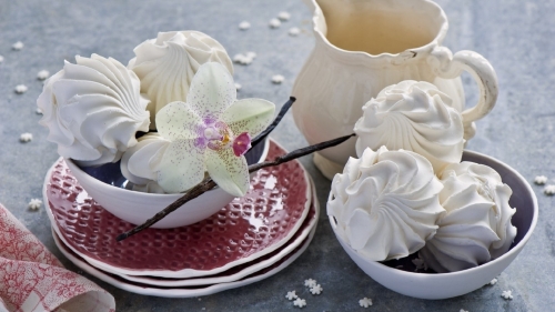 Меренги с миндалем. Взбейте 3 белка до легкой пены. Постепенно добавляйте 150 г сахара и миндальный экстракт, продолжая взбивать. Застелите противень пергаментной бумагой и с помощью кондитерского шприца или ложки выложите на него смесь. Выпекайте в духовке в течение 60-90 минут при температуре 110°.