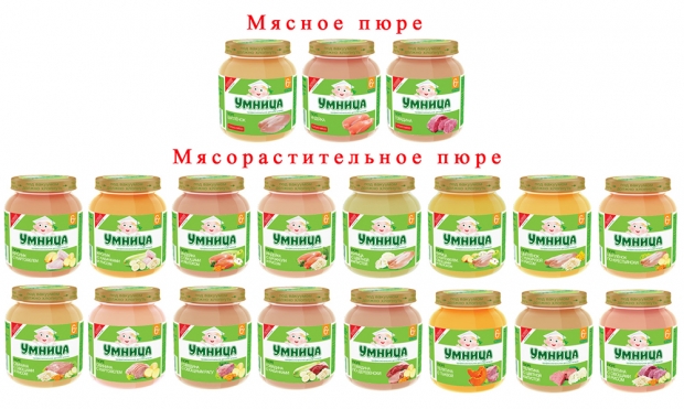 Детские мясные пюре классифицируются по своему составу на следующие виды: