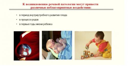 Часто речевые расстройства возникают из-за патологий, возникших во время беременности. Особенно критическим является период до 13 недели, когда формируется центральная нервная система плода, включая речевые зоны коры головного мозга. Наиболее распространенные причины, влияющие на развитие, включают: