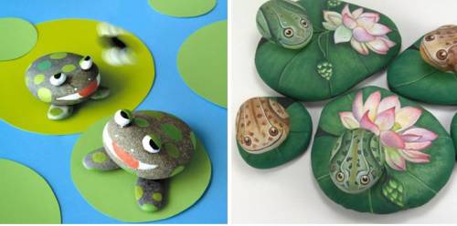 При желании готовых лягушат можно разместить на любой основе, добавив под них зеленые кружочки. Эта поделка из камней для дошкольников и первоклассников обязательно порадует детей и педагогов.