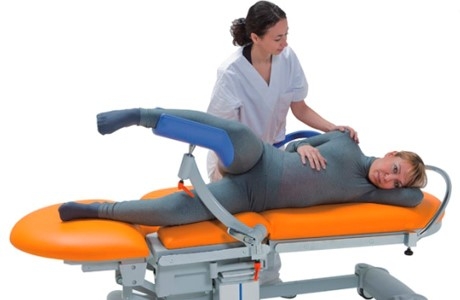 Одной из наиболее эффективных поз для облегчения боли является положение «на боку». Это положение часто применяется для расслабления. Лежа на одной из сторон, женщина способствует быстрому раскрытию шейки матки и облегчает движение малыша по родовым путям. В момент начала потуг роженица должна приподнять верхнюю ногу, чтобы акушерка могла получить доступ к влагалищу. До этого момента конечности могут находиться в свободном положении.