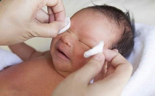 • Краснота и слезотечение у новорожденного могут возникнуть из-за повреждения слизистой оболочки глаз пылью, грязью или другими посторонними предметами. Если малыш трёт глаз или не может его открыть, следует осторожно поднять верхнее и нижнее веко и промыть глаз тёплой кипячёной водой или удалить инородное тело чистым платком, смоченным в воде. Если эти действия не приносят результата, необходимо обратиться за медицинской помощью.