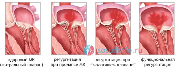 - митральная регургитация отсутствует, но провисающие створки не позволяют крови вернуться в предсердие.